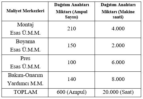 Üretim maliyetlerinin belirlenmesi