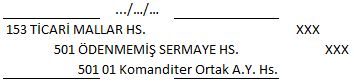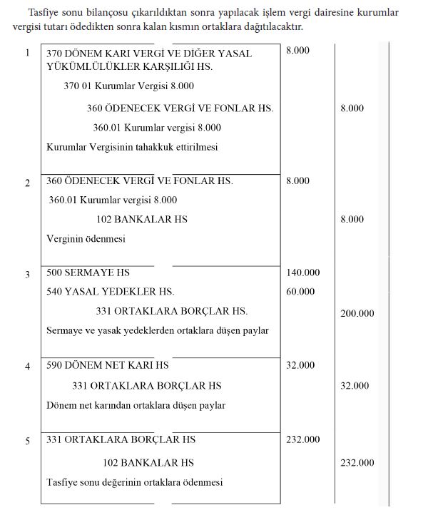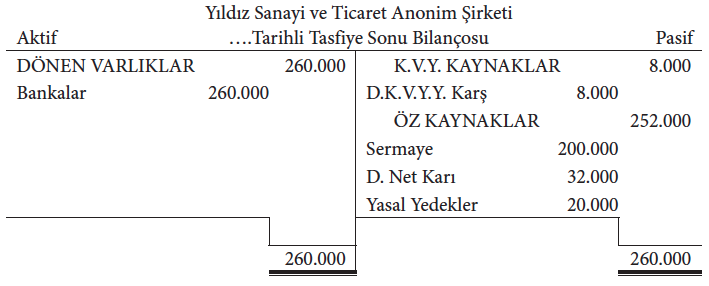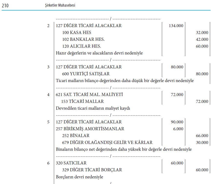İki anonim şirketin birleşerek başka bir şirket kurması sürecinde devreden şirketlerden biri tarafından yapılan bu yevmiye kaydı hangi işleme aittir?Seçenekler