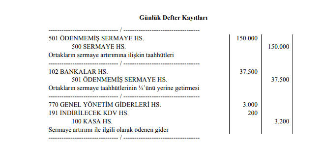Cari Özsermaye = Kayıtlı Özsermaye + (M.D.V. Cari Değeri - M.D.V. Kayıtlı Değeri) = 120.000 + (670.000 - 420.000) = 370.000 TL.