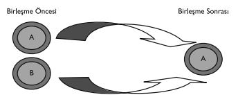 Birleşmeye katılan şirketler içlerinden birinin bünyesinde birleşir.