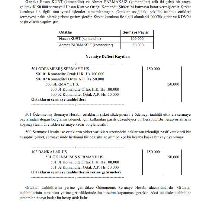 “Bir limited şirketi kurmak için en az gerçek bir veya tüzel kişi gerekirken, Anonim şirketin kurulabilmesi için pay sahibi olan bir veya daha fazla kurucunun varlığı şarttır. Şirketin kâr elde etmesi, büyümesi vb. gibi amaçlarının olması gerekir. Şirket kuruluşunda ortak arasında bir sözleşme hazırlanarak Noter veya Ticaret Sicili huzurunda imzalanır. Ortak amaca ulaşmak için ortakların şirkete para, mal veya emeği sermaye olarak koymaları gerekir. Ortaklar şirketin menfaatlerini korumak için çaba sarf etmeleri gerekir.”