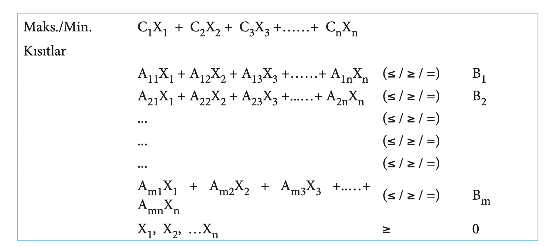 amaç fonksiyonu) olmak üzere üç temel bileşen bulunmaktadır. Tüm bu bileşenlerin yanı sıra ortaya atılan problemin doğru ve tam olarak tanımlanmış olması gerekmektedir. Kalite puanı karar vericinin amacı ile ilgilidir.
