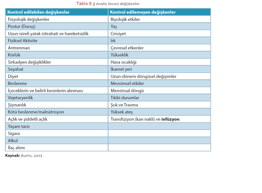Kan, ön kol veninden alınır (Görsel 8.1). Kan numunesi alınırken kola takılan turnikenin 1 dakikadan fazla kalmaması önerilir. Kullanılan bir damardan tekrar örnek alınmamalıdır. Kan alınacak bölgenin alkol gibi uygun bir dezenfektanla temizlenmesi gerekir. Ölçülecek analite göre kanın uygun tüpe alınmasına dikkat edilmelidir. Kan alma işlemi bittiğinde iğne çıkarılarak hastanın bu bölgeye kuru gazlı bez ile bastırması ve kolunu yukarıda tutması istenir.