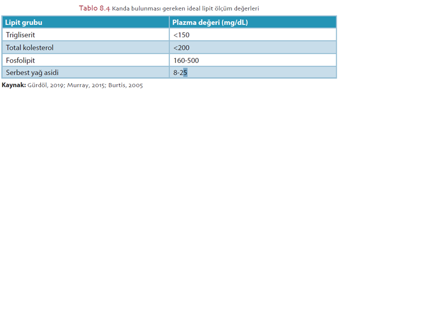 Trigliserit: 1 molekül gliserolün 3 molekül yağ asiti ile oluşturduğu esterlerdir. Klinik laboratuvarda enzimatik metotlara dayanan ticari kitler ile kandaki seviyeleri ölçülmektedir.