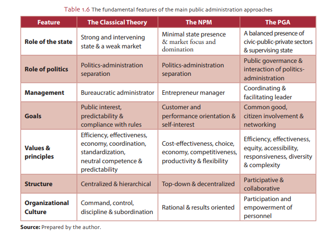 The classical theory was characterised by hierarchical organisational structure and functioning, neutrality, expertise, written rules and duties.