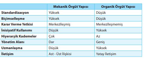 Burns ve Stalker’ın mekanik ve organik örgüt yapısı temel özellikleri karşılaştırmalı olarak Tablo 8.1’de sunulmaktadır.