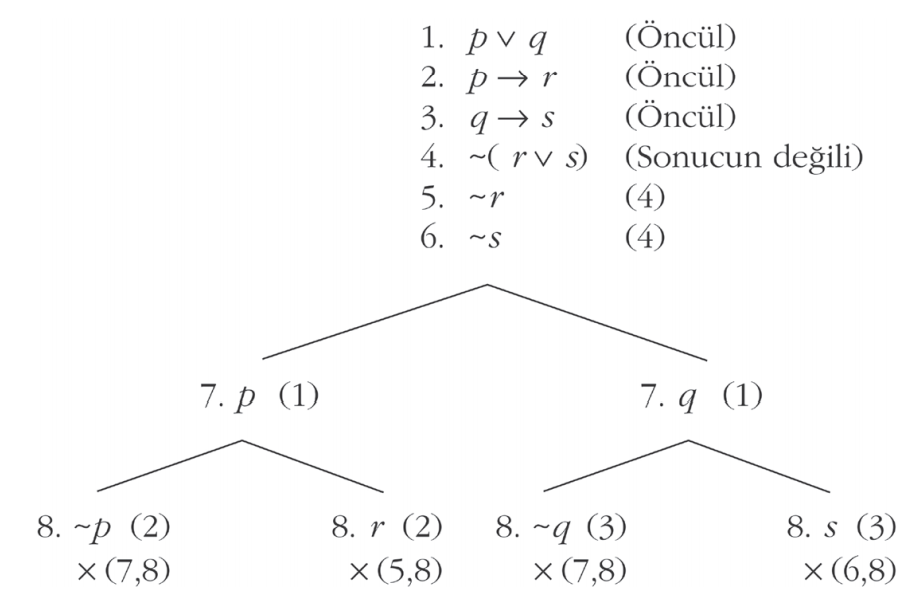 değillenmesi kurallarını ve önerme eklemlerine ait kuralları uygulayarak ilerleriz.
