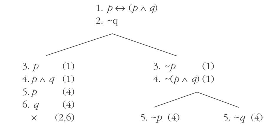 bir ifade kalmamış dal) bir açık dal (bir ifade ve onun değilini bulundurmayan bir dal) ortaya çıkarsa, bu dallardan herhangi birine göre önermenin bir