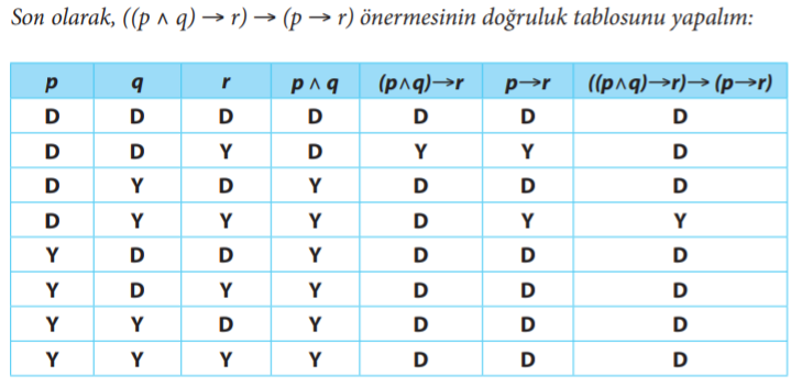 6. Bir önermenin çözümleyici çizelgesinde tamamlanmış (işlem uygulanacak