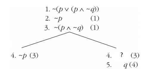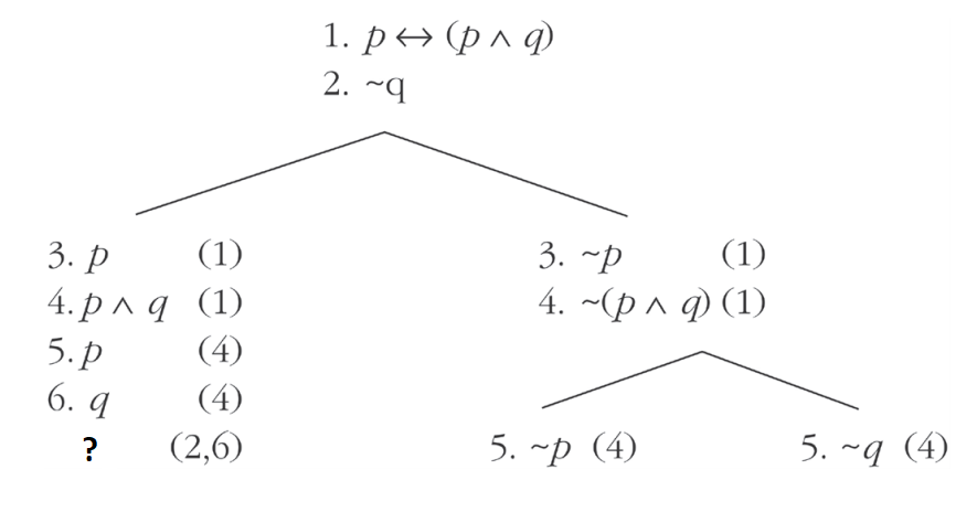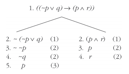bir ifade kalmamış dal) bir açık dal (bir ifade ve onun değilini bulundurmayan bir dal) ortaya çıkarsa, bu dallardan herhangi birine göre önermenin bir