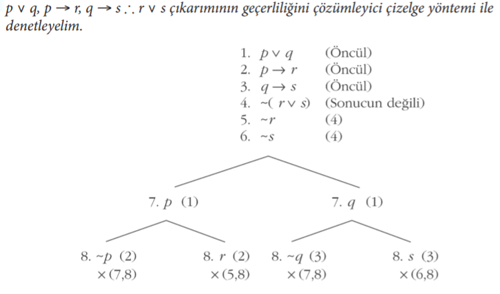 Çizelgede tüm dallar kapanırsa (yani çizelge kapanırsa) çıkarım geçersizdir.