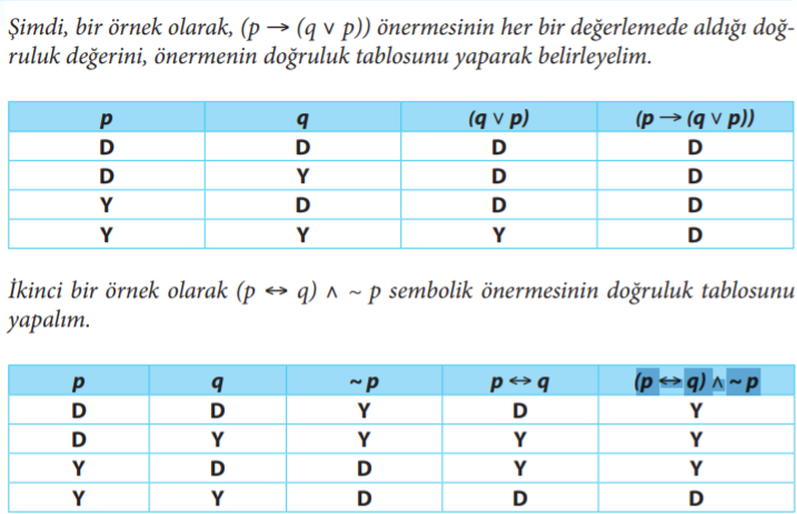 Mantıkta “doğru” ve “yanlış” değerleri “doğruluk değerleri” olarak, doğruluk değeri alan şeyler ise “önerme” olarak adlandırılır.