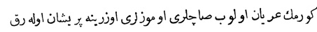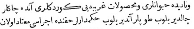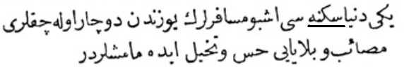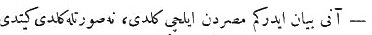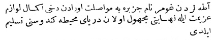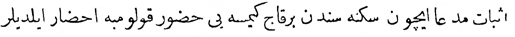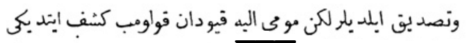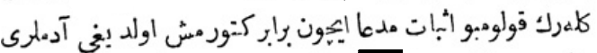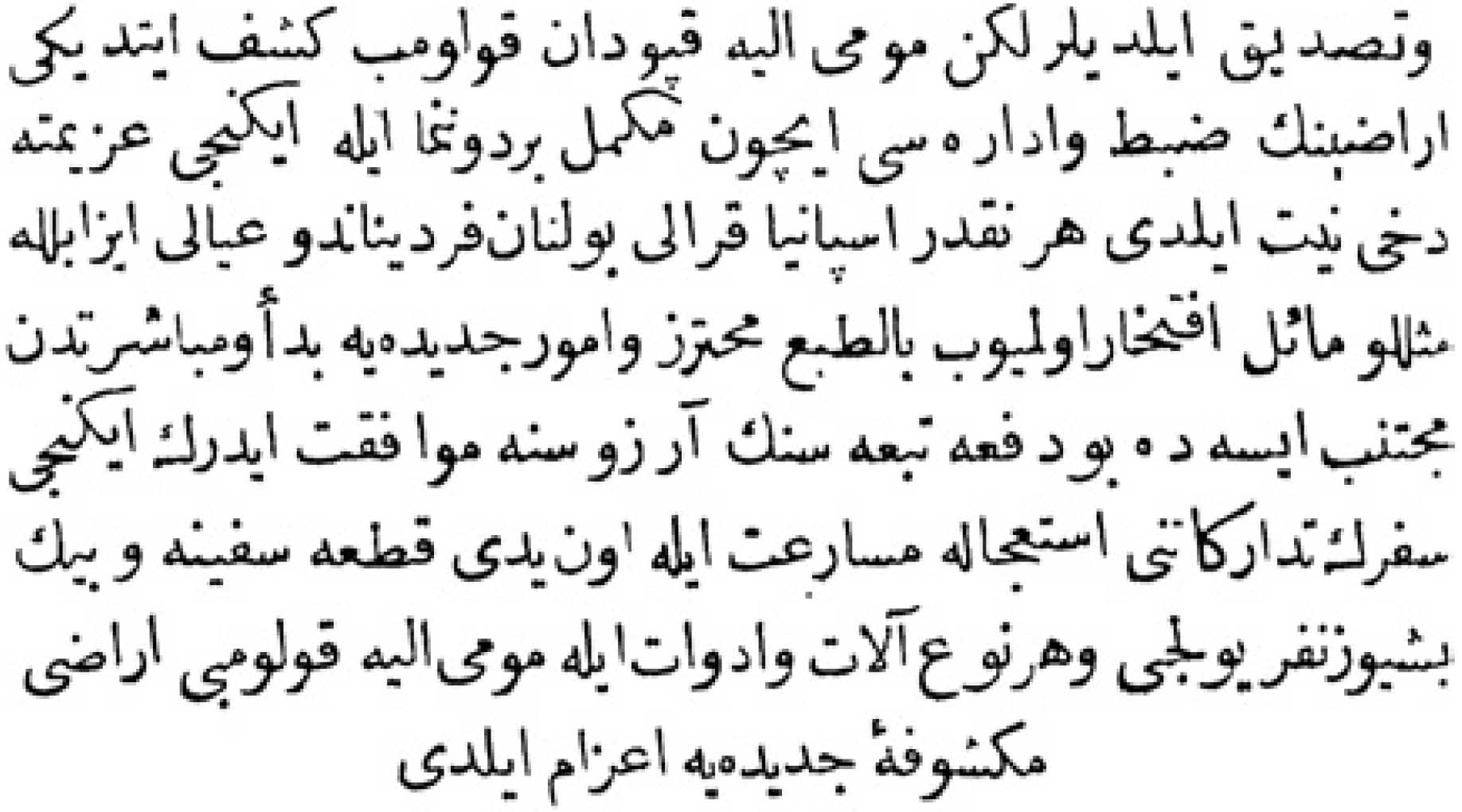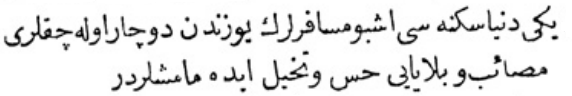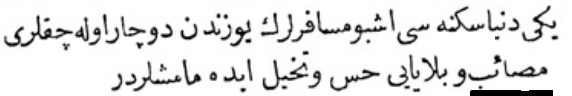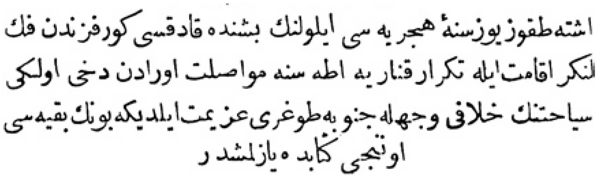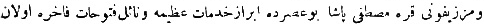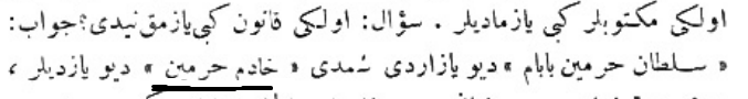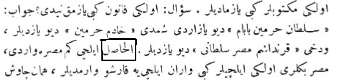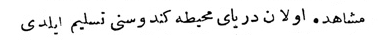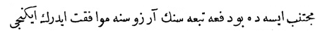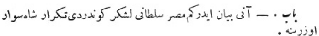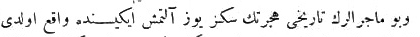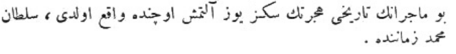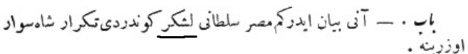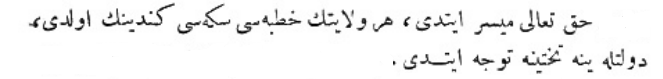 Yukarıdaki Osmanlıca metnin çevirisi şu şekildedir: „Her tarafın padişahlarından tahta geçişini kutlamak için elçiler geldi, ama Mısır sultanından elçi gelmedi.“