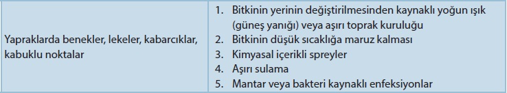 Aşağıdakilerden hangileri iç mekan bitkilerinde yaprak dökülmelerine neden olabilmektedir?