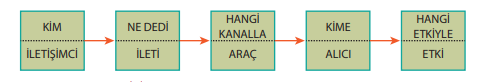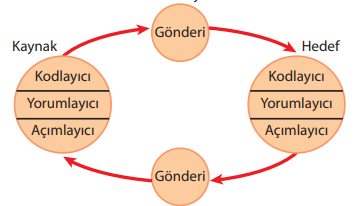 (1) Alıcı, (2) Kanal, (3) İleti, (4) Geri bildirim, (5) Gürültü