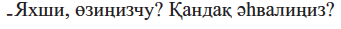 "Ырaкмaт, жaкшы." cümlesinin Latin alfabesiyle yazımı aşağıdakilerden hangisidir?