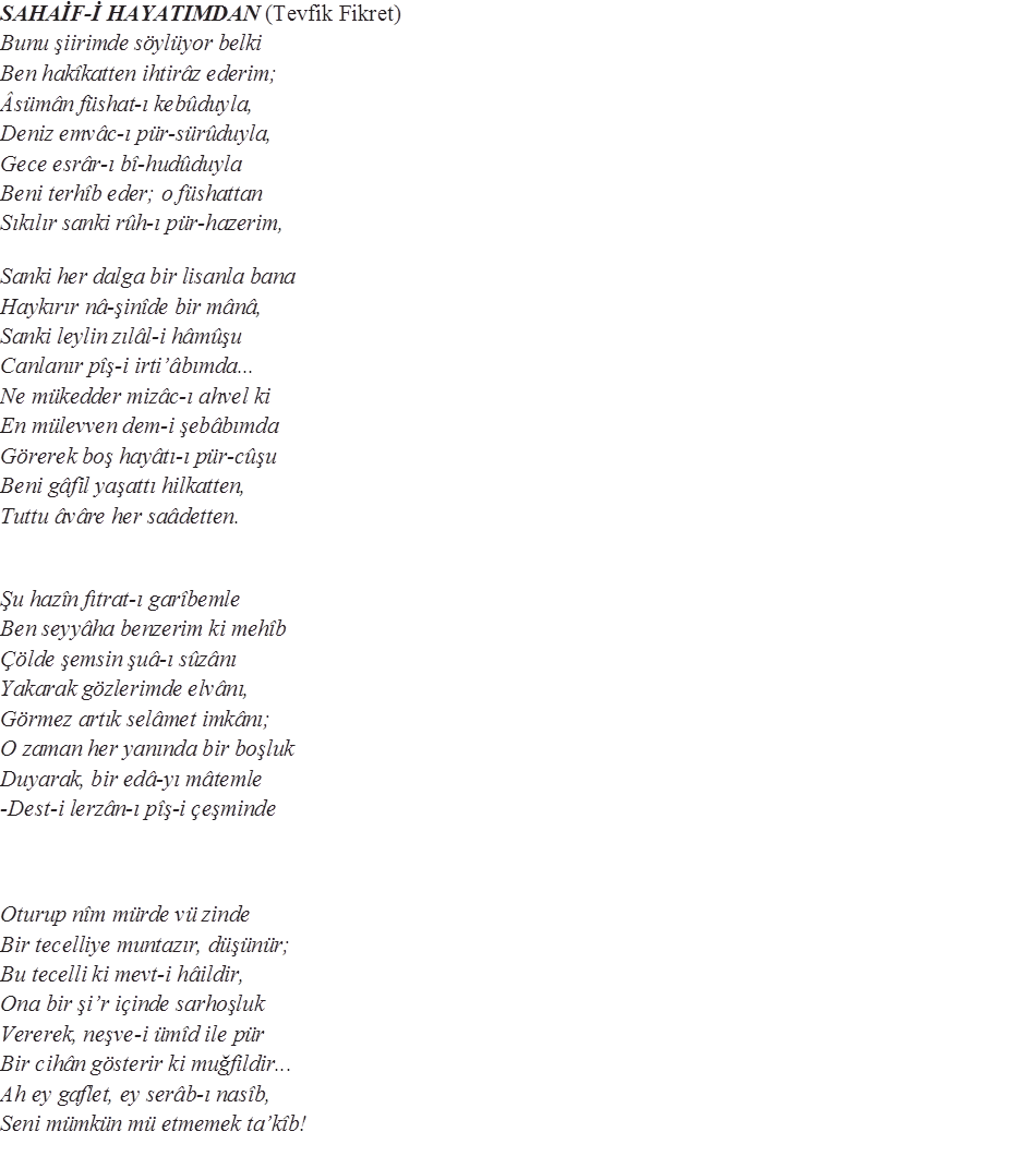 Şiirde Tevfik Fikret, Alfred de Musset, François Coppée ve Sully Prudhomme’dan etkilenmiştir. Doğru cevap C'dir.