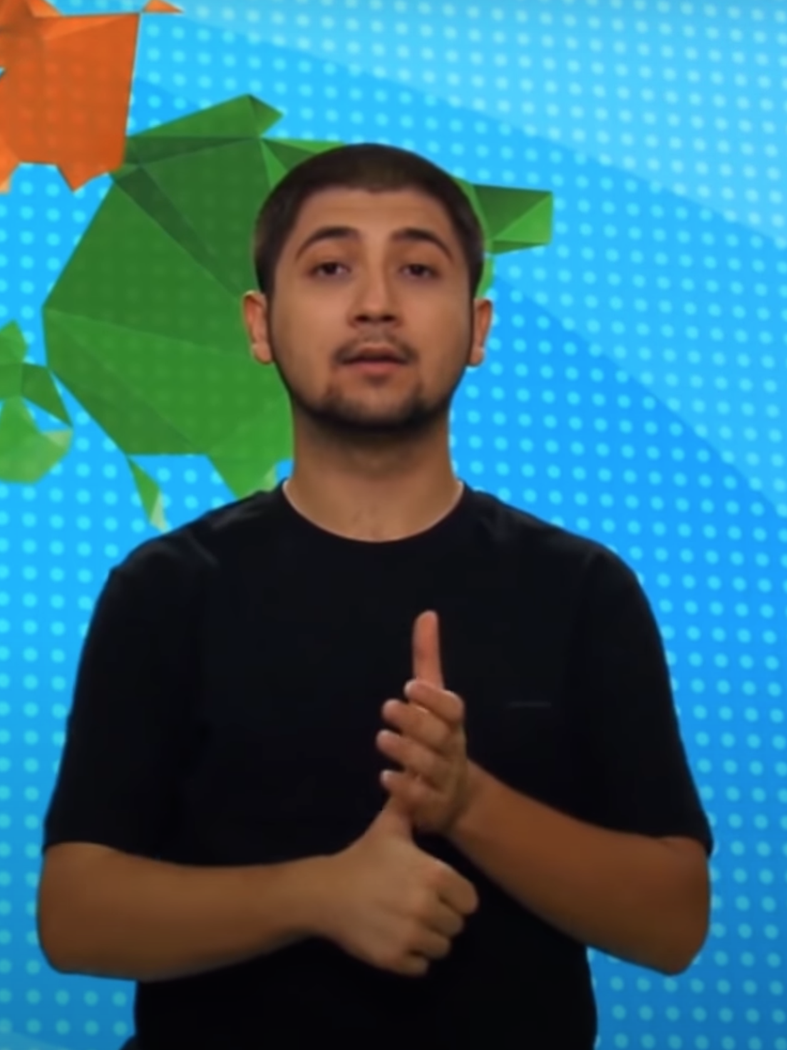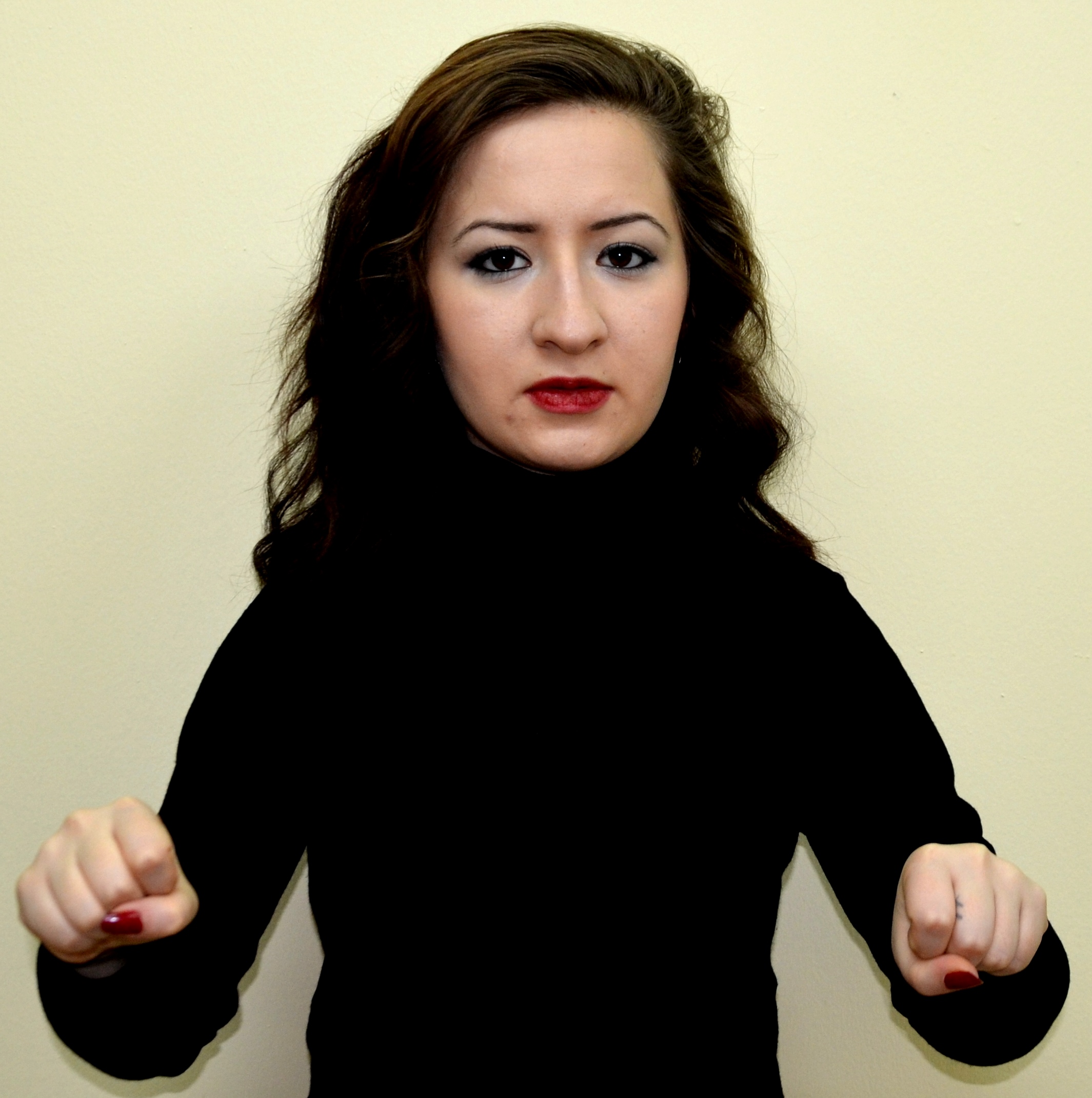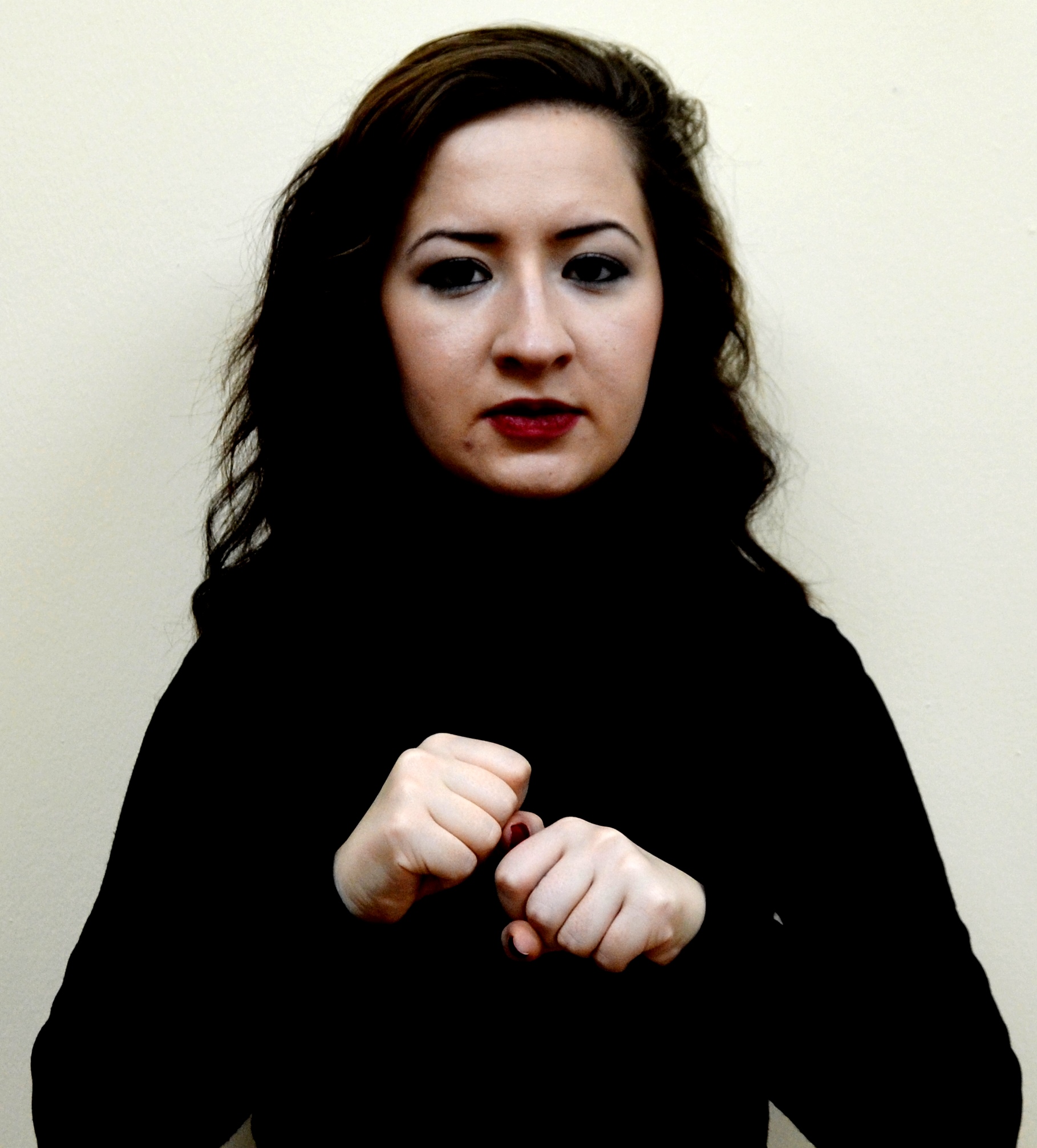Her iki elin tüm parmakları kapalı, eller yumruk şeklindedir, eller iki yandan ortaya getirilir ve yumruklar birleştirilir.