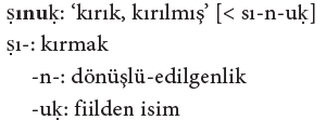 Bilgileri adlandırmak amacıyla söz türetmek için var olan sözlere ulanan biçim birimler yapım ekleri olarak adlandırılır. +çAK bir isimden isim yapma eki iken diğerleri değildir. Örneğin +çAK. oyun+cak, kök+çek, öl+çek.