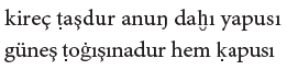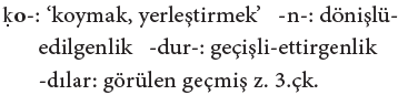 “mürid bolup turur biz” ifadesinde öğrenilen geçmiş zaman eki olan “-p turur” eki kullanılmıştır.