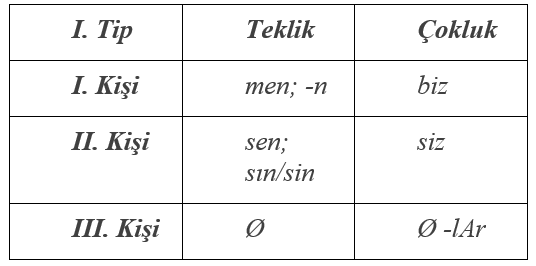 Aşağıdakilerden hangisi I. Tip kişi eklerine örnek teşkil eder?