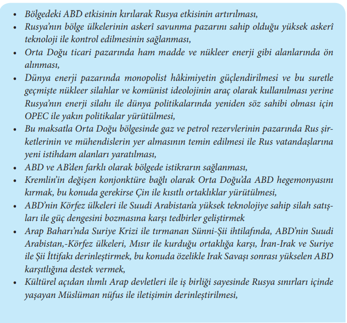 Aşağıdakilerden hangisi Rusya'nın Orta Doğu politikasındaki en önemli amaçlardan biri değildir?