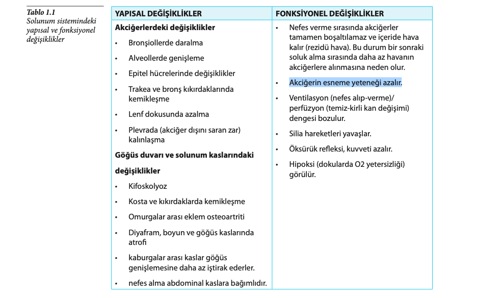 Yaşlılarda kalbin kulakçık, karıncık ve kapaklarında yapısal değişiklikler görülür ve buna bağlı olarak da kardiyak kalpten pompalanan kan miktarı artmaktadır.