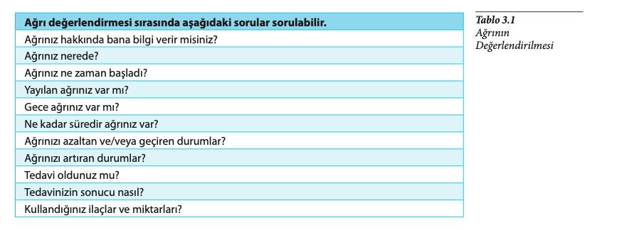 I: Ağrıların değerlendirilmesi, tespiti ve tedavisi
