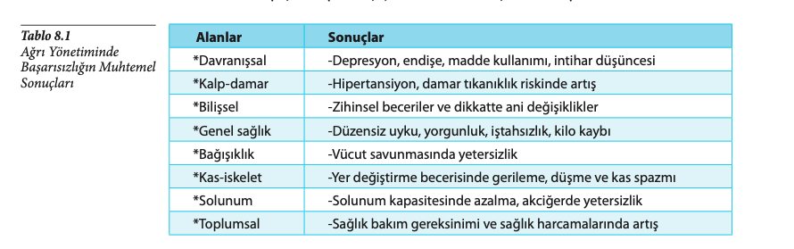 Ağrı yönetiminde başarısızlığın muhtemel sonuçları ile ilgili aşağıda yazılanlardan hangisi doğrudur?