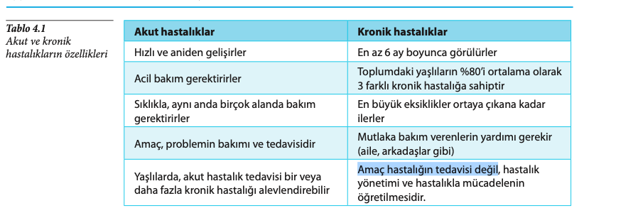 Ülkemizde doğumda beklenen yaşam süresi yükselmesi, etrafımızda yaşlı ama yaşlandıkça kronik sorunları olan bireylerin popülasyonunun artmasına neden olmaktadır. Herkronik sorunun kendi kısıtlayıcıları vardır ve bu kısıtlılıklar domino taşı etkisiyle başka kısıtlılıklara neden olur. Böylece, yaşlı bireyler yaşla doğru olarak başka bir bireyin yardımına ihtiyaç duymaktadır. Bunun bazı sonuçları vardır.