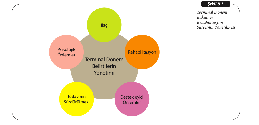 - 5. Ay: Yaşlı bireyde biraz kilo kaybı, zayıflama, belirtilerde yaygınlaşma, stres belir- tileri, hastalığın son döneminde olduğunu giderek kabul etme, korku ve despres- yon belirtileri gözlenir.
