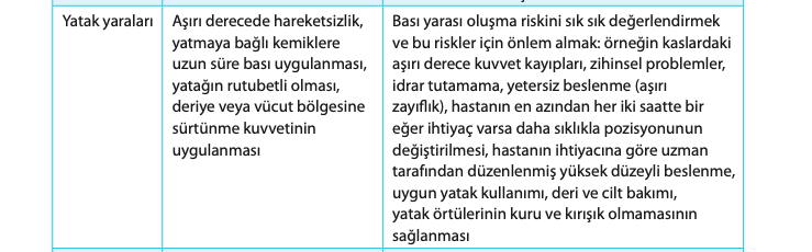 Hareketsizlikle ilgili olarak yatak yarasında artma meydana gelir.