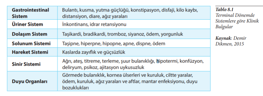 Gastrointestinal Sistem: Bulantı, kusma, yutma güçlüğü, konstipasyon, disfaji, kilo kaybı, distansiyon, diare, ağız yaraları