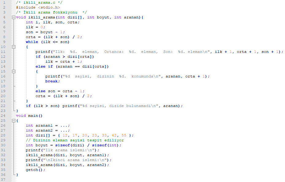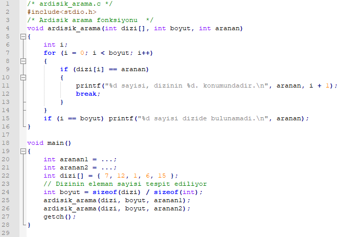 - Enine arama algoritması, program kodu içerisinde enine_arama_algoritmasi fonksiyonu sayesinde gerçekleştirilmektedir.