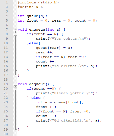 - Daha sonra, while döngüsü içerisindeki kod bloğu çalışmakta ve kuyrukta eleman bulunduğu sürece yigindan_cikar fonksiyonu vasıtasıyla üzerinde işlem yapılacak düğüm, yığından çıkarılarak belirlenmektedir
