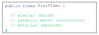 - Nesneye yönelik programlamada temel teşkil eden sınıflar oluşturulabilir