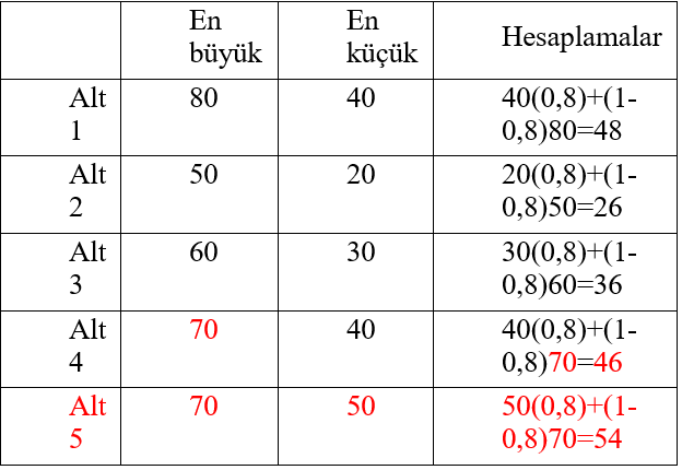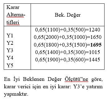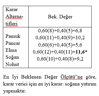 6. Adım: En uygun seçeneğin belirlenmesi.