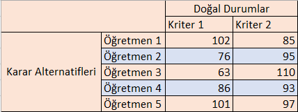 Seçeneklerin karar kriterleri ile değerlendirilmesi